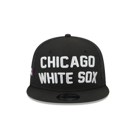 Chicago White Sox Era Black Stacked 9FIFTY Mesh Trucker Snapback Hat MENS OG